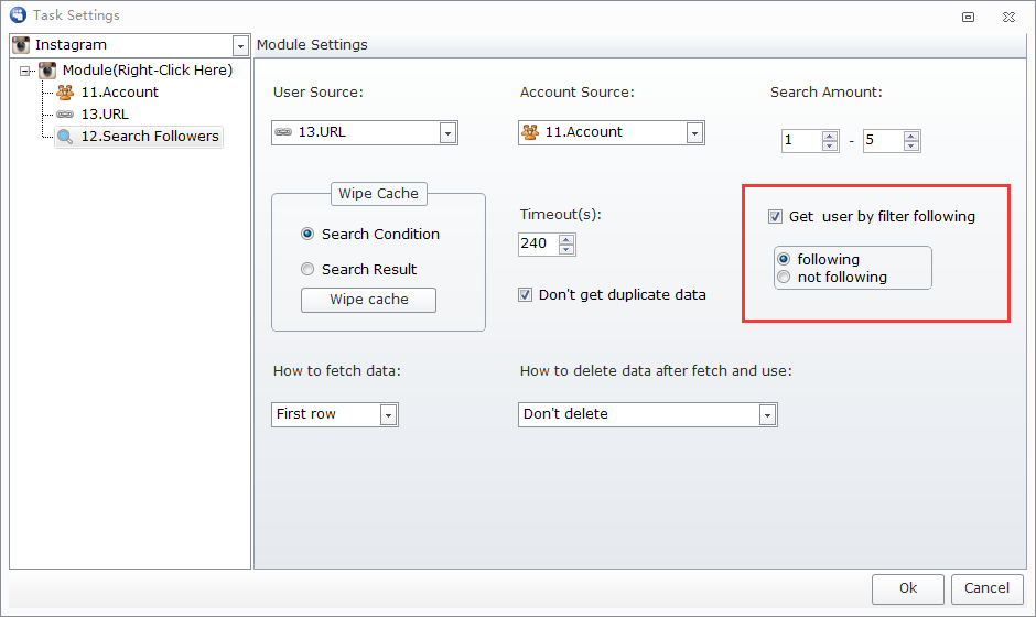 Repost, Send Message By Check, Search Followers, Block User, Home Comment